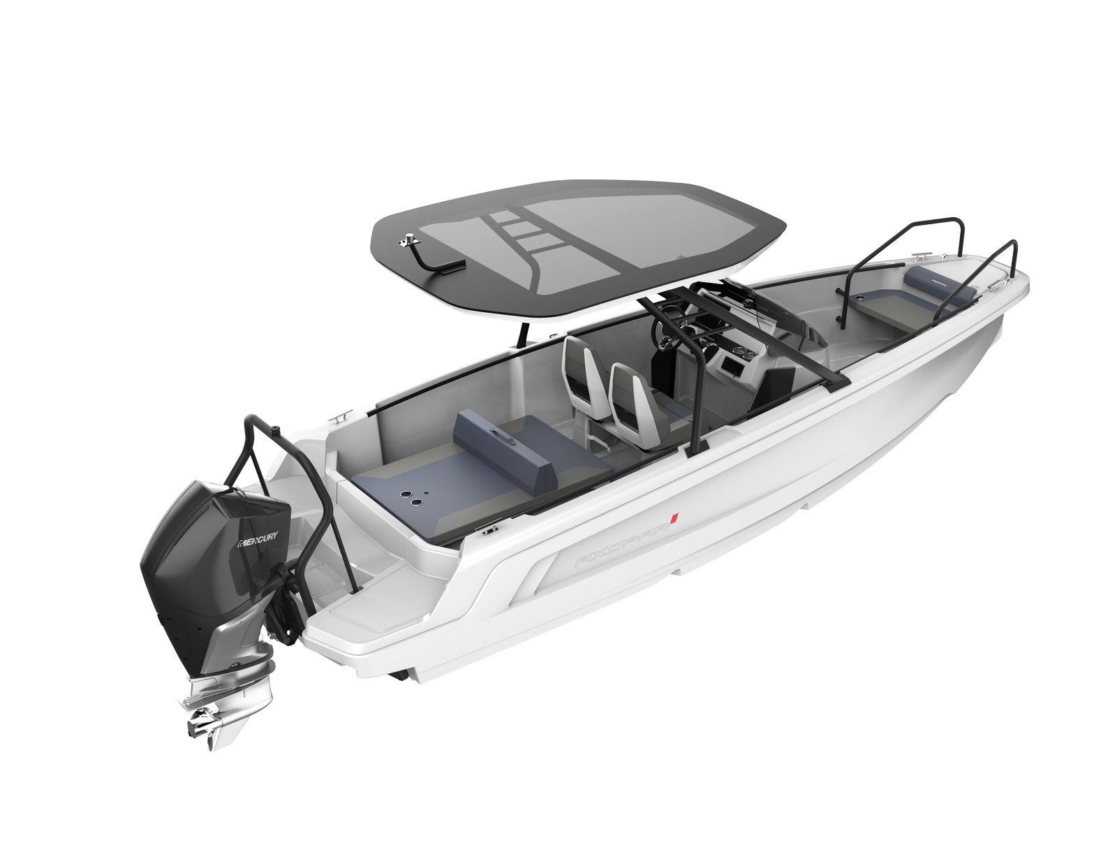 The Axopar 22 T-Top adds a new dimension of functionality to the Axopar 22 range. The cool-looking Axopar 22 T-Top offers some of the best-in-class handling and performance on the market, combined with solid, competitive pricing. Designed so that it takes nothing away from the thrill and sheer enjoyment of the ‘full-open’ Axopar 22 Spyder, the Axopar 22 T-Top takes the ownership experience further. The all-weather T-Top roof consists of a fixed canvas top within a GRP surround, mounted to a raked-back, cool-looking, black painted aluminium targa-frame. The T-Top roof is also available with an optional folding canvas top that will open up the cockpit to the sun when wanted or stay closed for maximum shade.