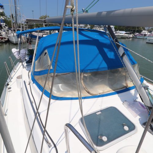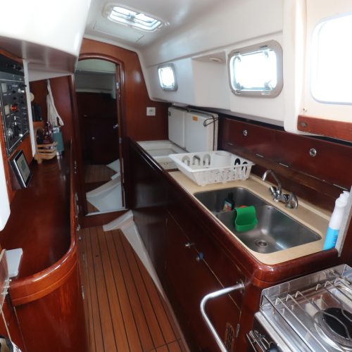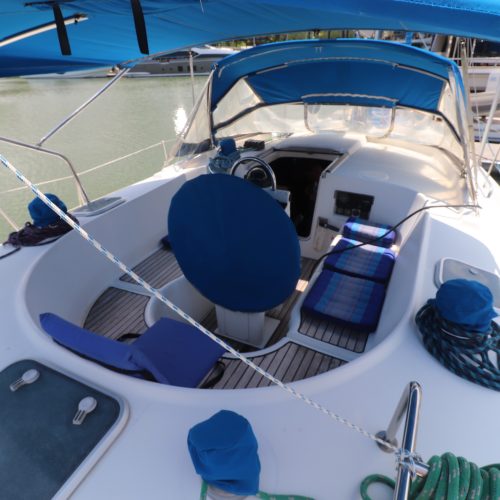 This Bénéteau Oceanis 40 CC is a centre-cockpit cruising yacht built in 1999 and designed by the renowned Groupe Finot. Designed as a comfortable, liveaboard friendly blue water cruiser, the model is well known for its safety, ease of short-handed sailing, and exceptionally spacious interior.