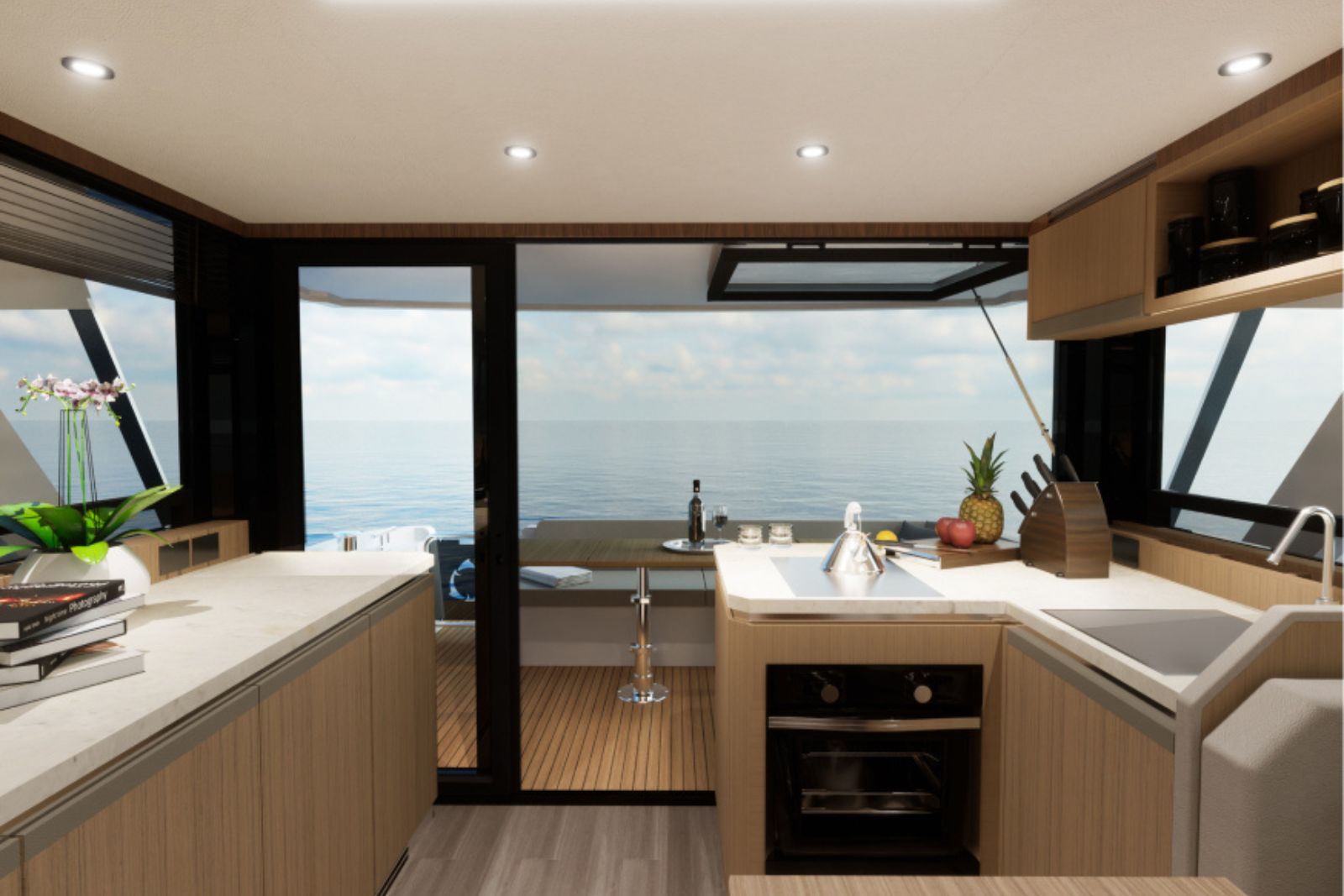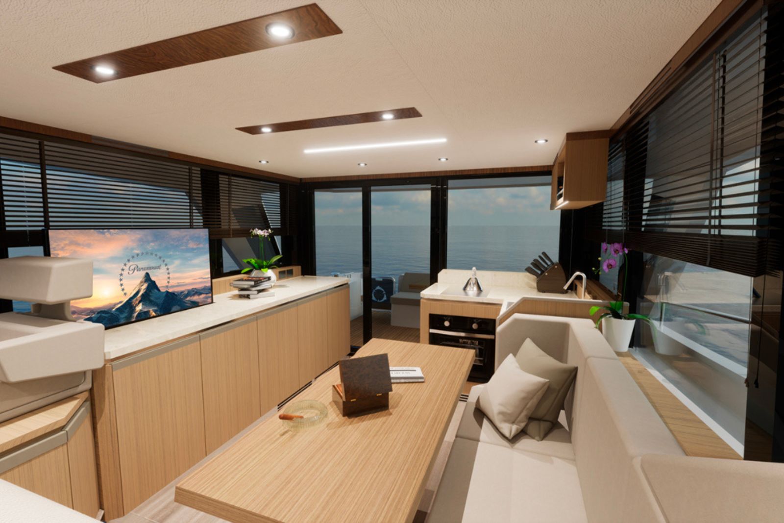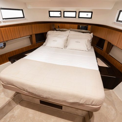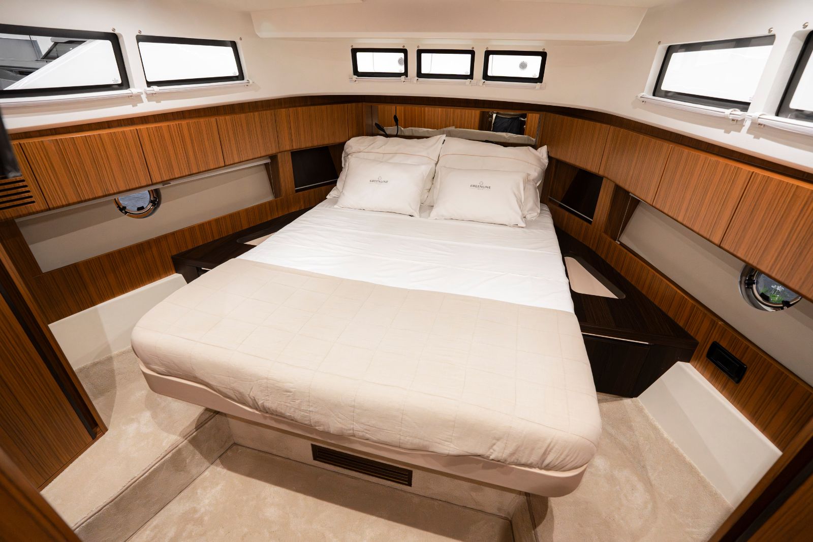 At 13.5 metres with a 4.3 metre beam, the Greenline 42 offers remarkable interior volume and versatility. Its innovative hull design enables up to 30 knots of top speed, while twin 250 hp engines deliver reliable performance. Inside, panoramic windows flood the salon with natural light, complemented by premium materials, customizable layouts, and seamless indoor-outdoor flow.
