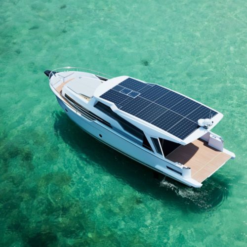 The all-new Greenline 42 is the next evolution of responsible yachting. Designed by Marco Casali and engineered by Micad, it combines hybrid propulsion, solar power, and timeless design. With Greenline’s sixth-generation H-Drive system and 4.1 kW of solar capacity, it offers silent operation, efficient cruising, and home-like comfort — setting a new standard in sustainable boating.