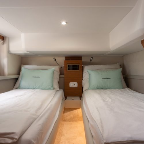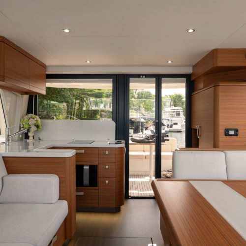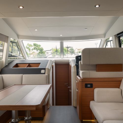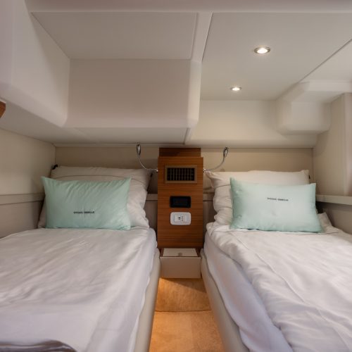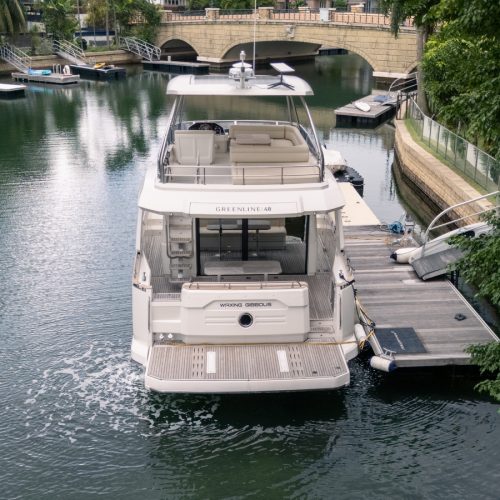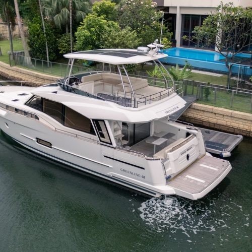 The 48 Fly is a step up from the 40 and 45 models from Greenline, with three guest cabins, plus a saloon conversion, and a world-class layout by J&J Design. With wide and spacious cabins, a separate owner’s bathroom, and a 360-degree panoramic view from the salon, living on this boat will be a privilege.