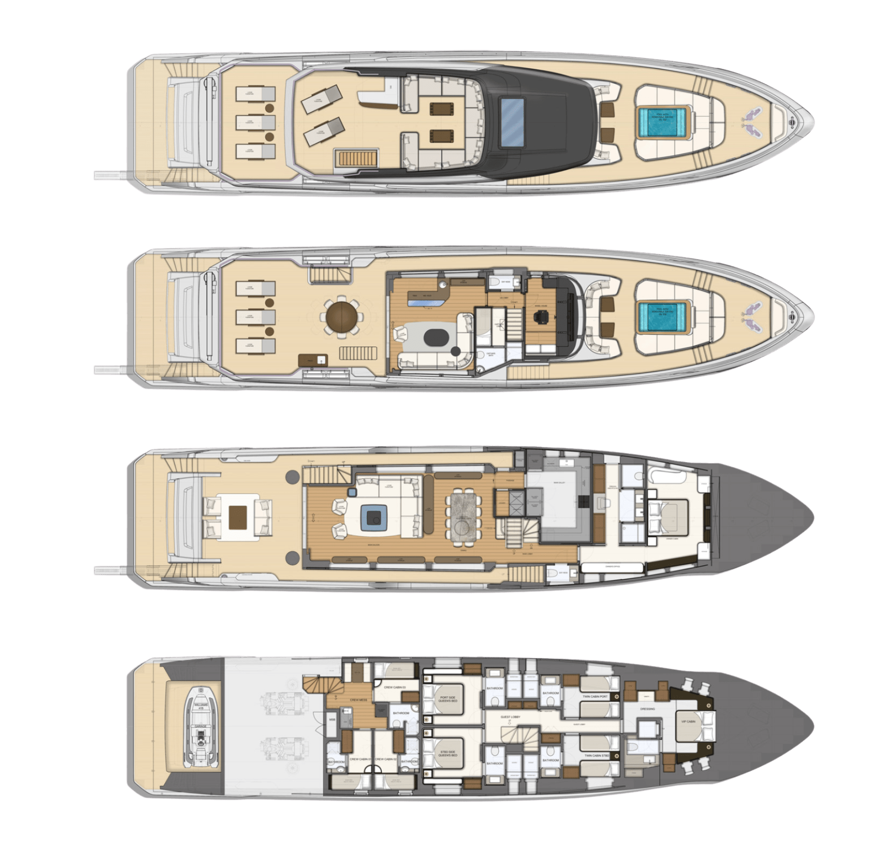 The Majesty 112 is a tri-deck superyacht designed for owners who value space, light and refined comfort. With expansive decks, elegant interiors and efficient long-range performance, she delivers a confident blend of luxury, practicality and timeless design—built to impress from every angle.