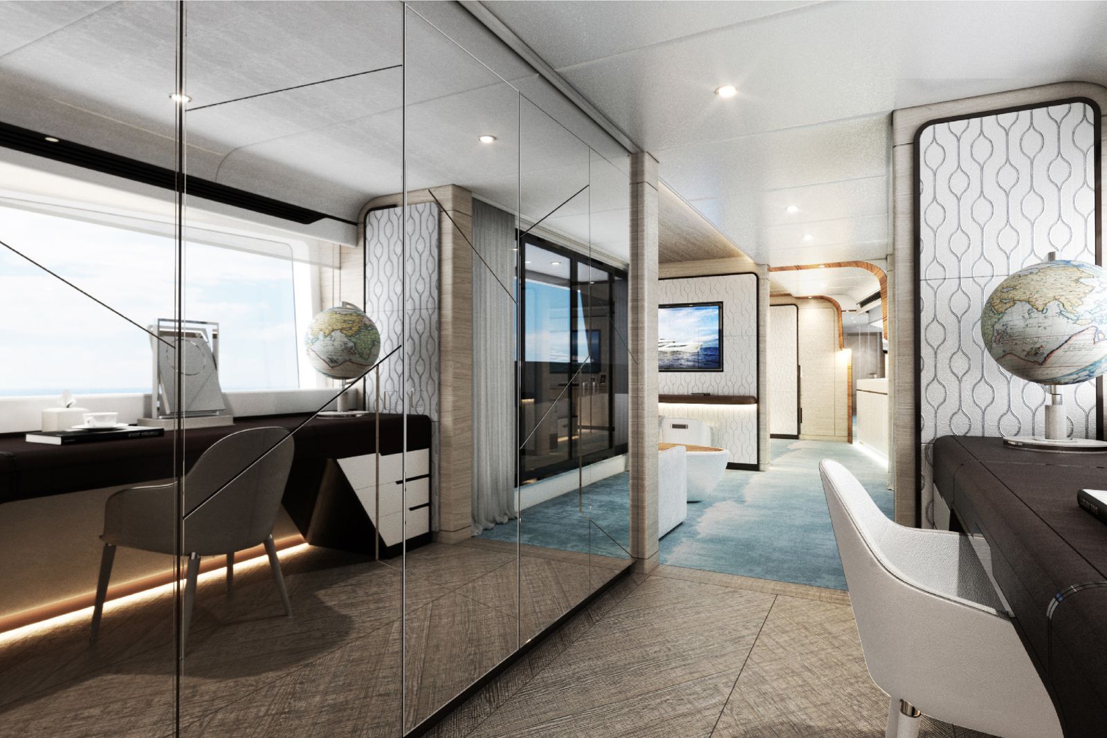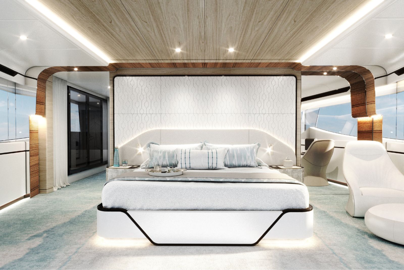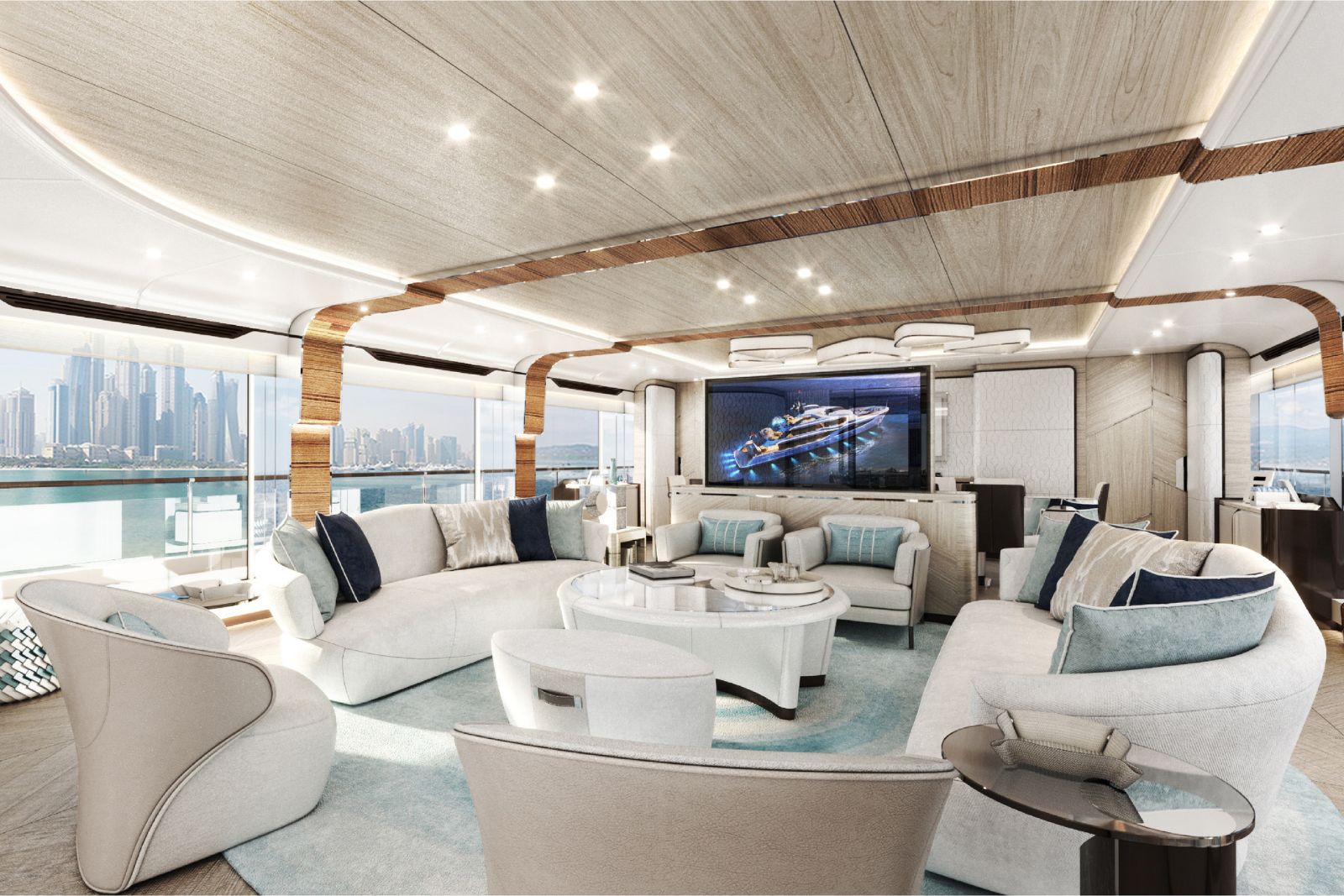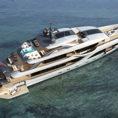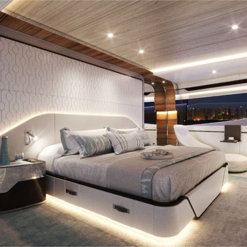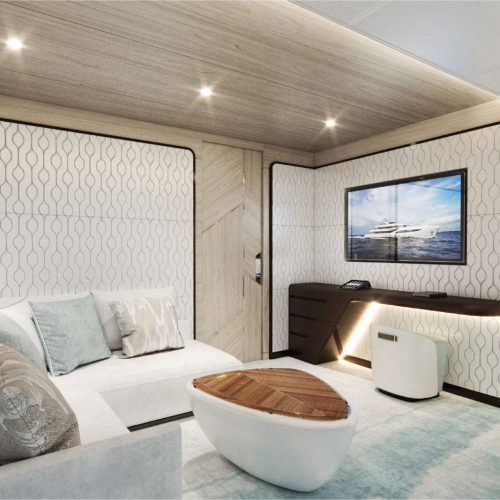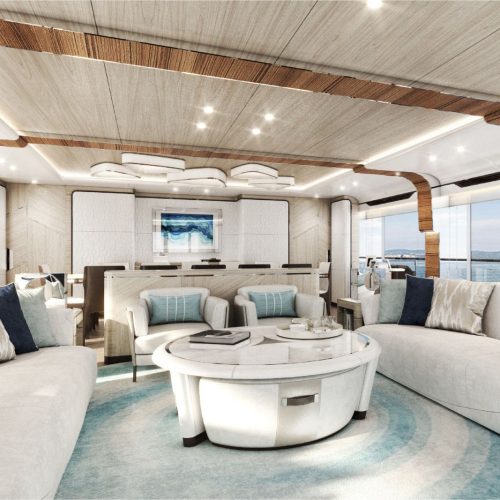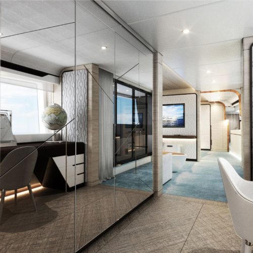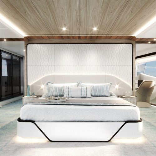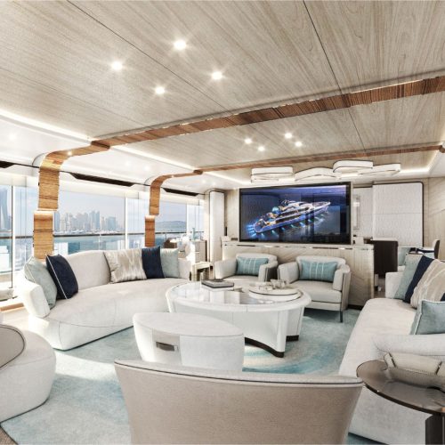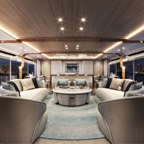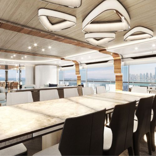Designed by Cristiano Gatto Design Studio with naval architecture by Van Oossanen, the Majesty 160 showcases a contemporary aesthetic defined by light, volume, and connection to the sea. Floor-to-ceiling glazing, fold-down balconies, and an expansive sun deck with infinity pool create an exceptional lifestyle platform for both private cruising and entertaining.
