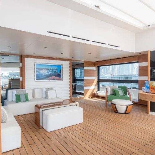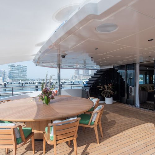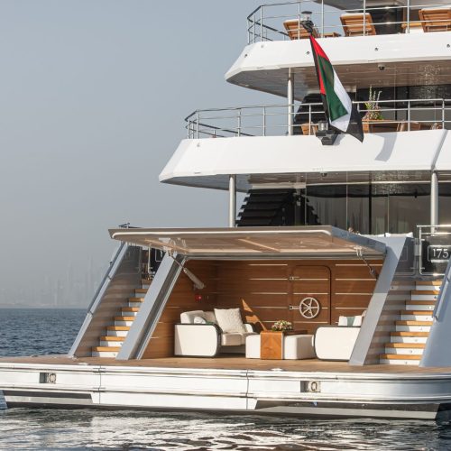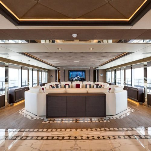 Designed by the award-winning Cristiano Gatto Design Team, the Majesty 175 features seven lavish staterooms, including a spectacular owner’s suite on the upper deck with a private pool and outdoor lounge. Multiple al fresco dining areas, generous salons, and flowing interiors create an atmosphere of effortless sophistication for owners and guests alike.