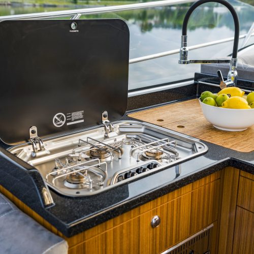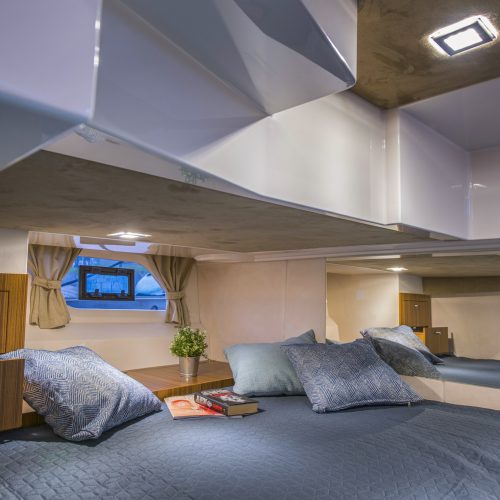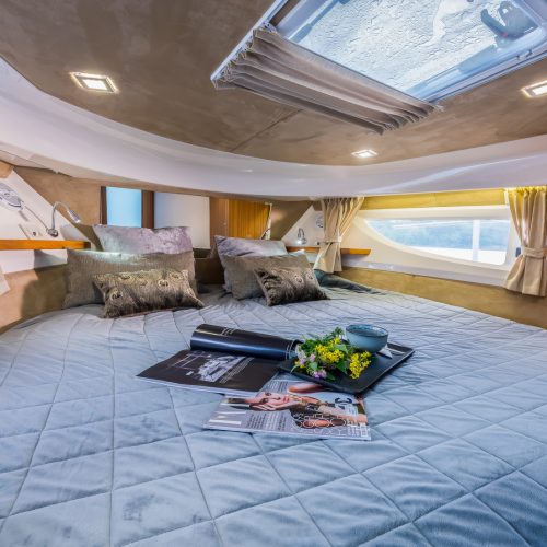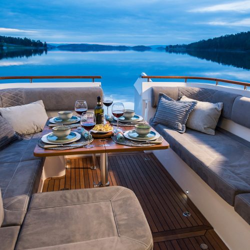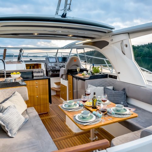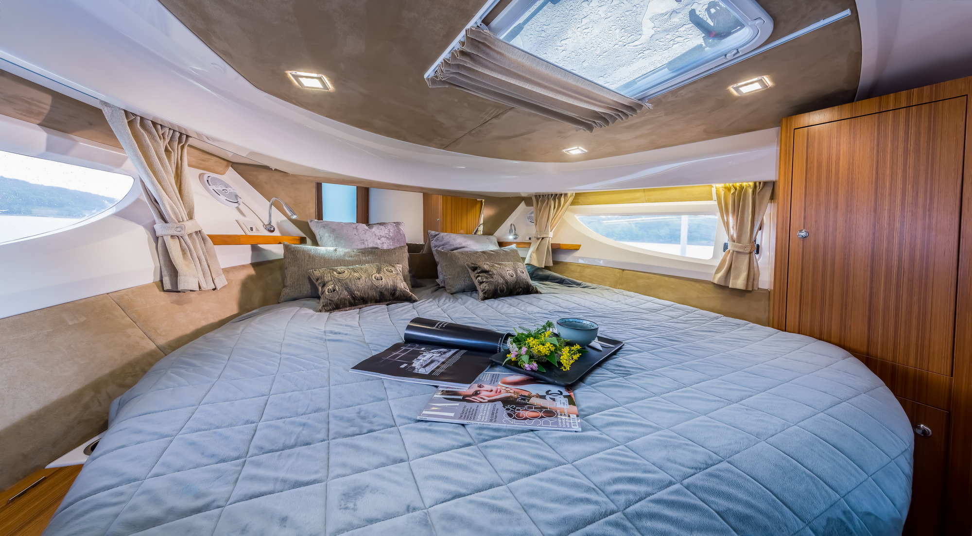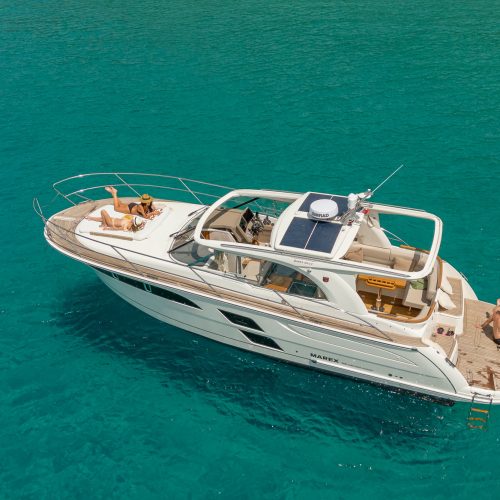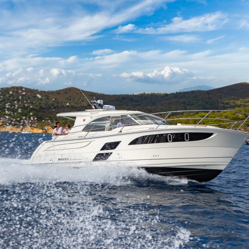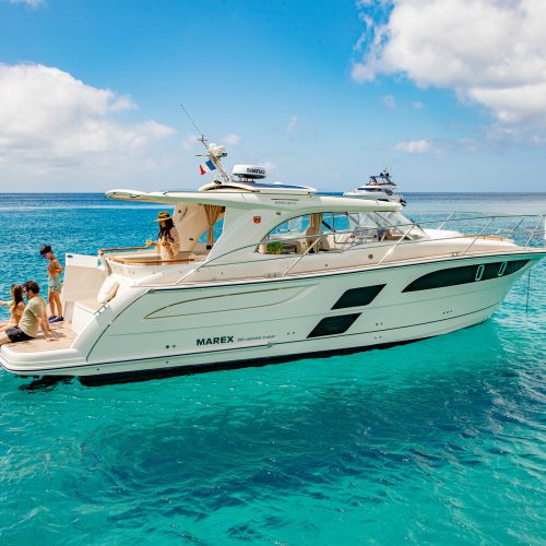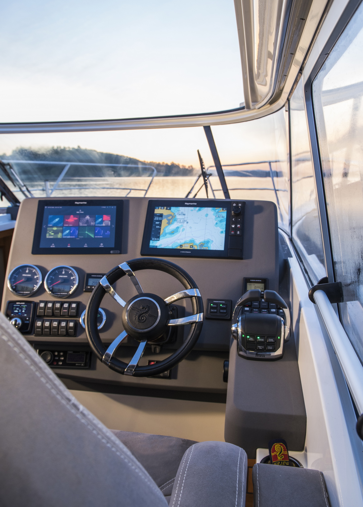 Built on a proven Marex hull and powered by Volvo Penta sterndrives, the 360 Cabriolet Cruiser delivers a smooth, quiet, and confident ride. With speeds approaching 38 knots and an efficient cruising range of over 200 nautical miles, it’s ideal for day boating or extended coastal cruising. Deep side decks, a protected helm, and premium materials make it safe, easy, and rewarding to operate in all conditions.
