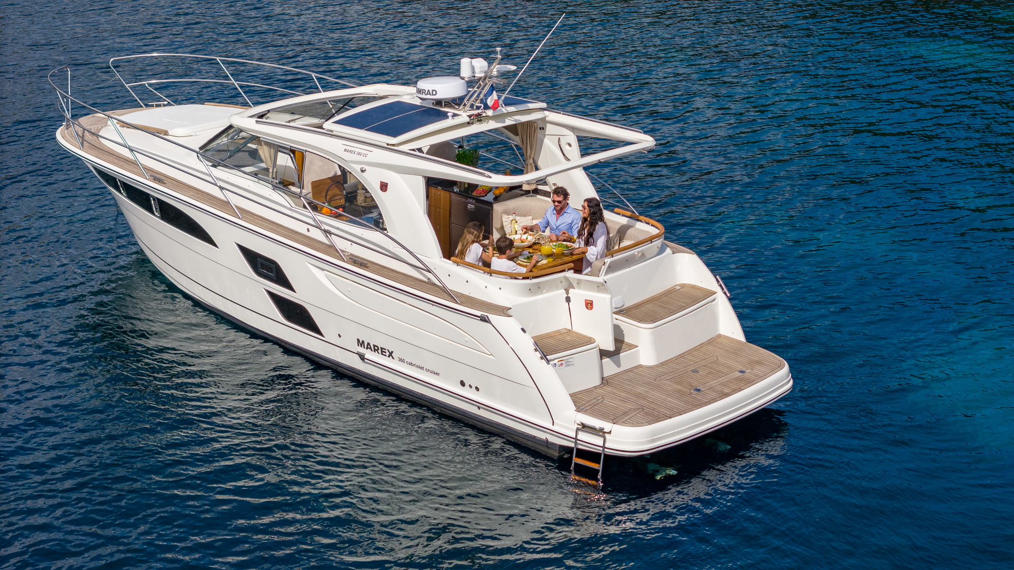 The Marex 360 Cabriolet Cruiser combines the freedom of open-air boating with the comfort and craftsmanship Marex is known for. Designed for those who love life outdoors, it features a completely open cockpit with an innovative canopy system that can be deployed or stowed in seconds. Spacious, secure, and beautifully finished, the 360 offers big-boat comfort and social space in a perfectly balanced 11.5 m cruiser.