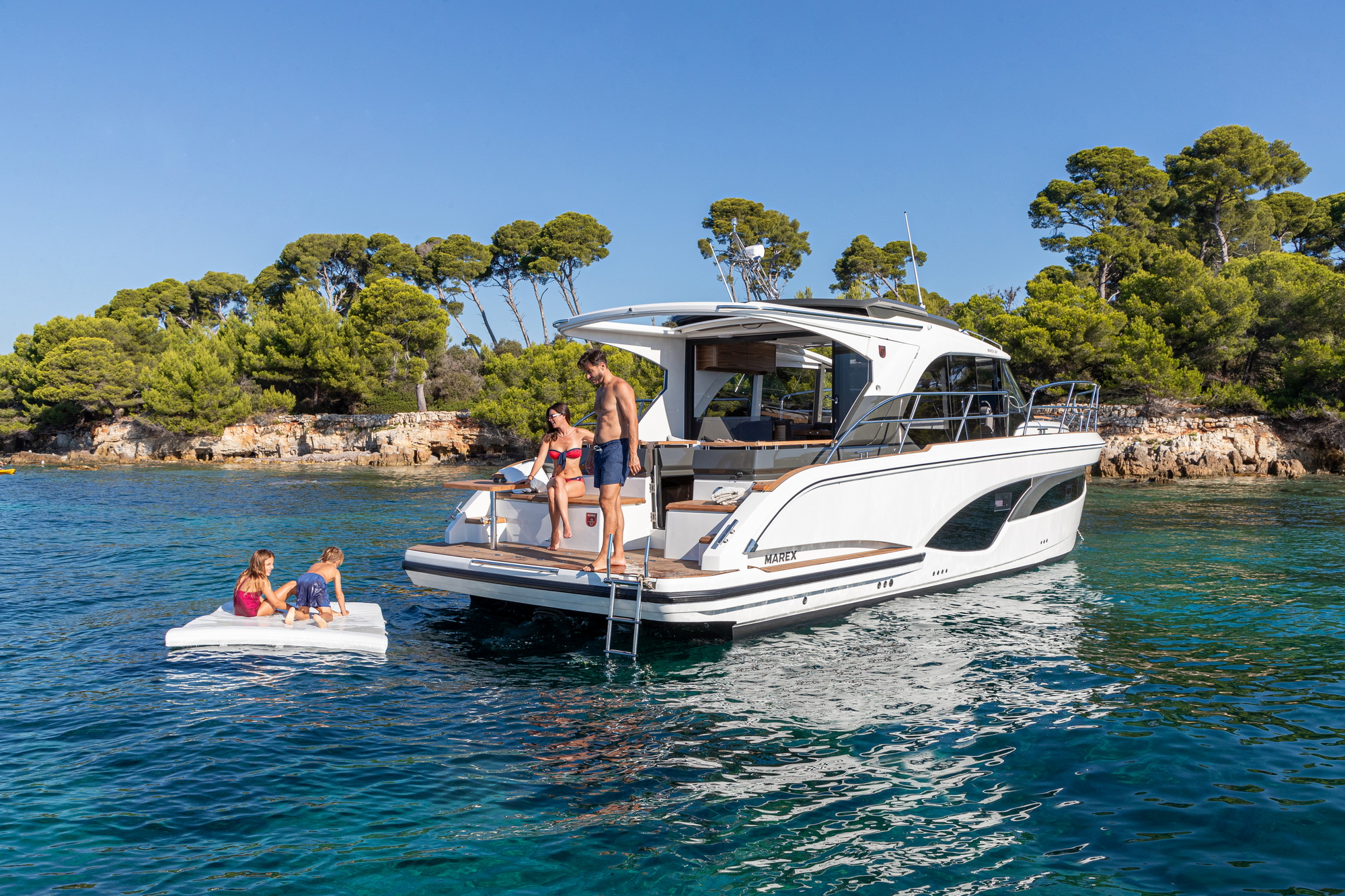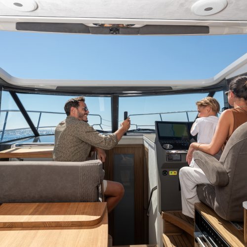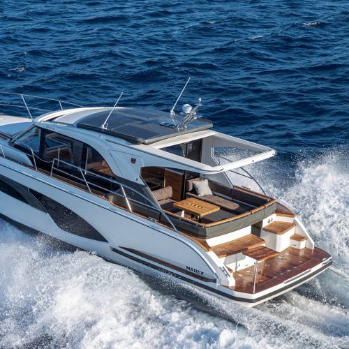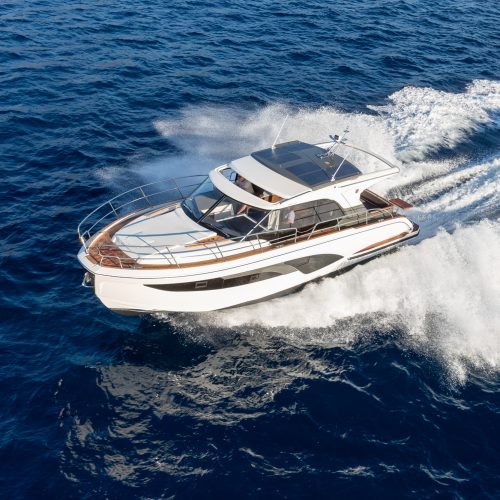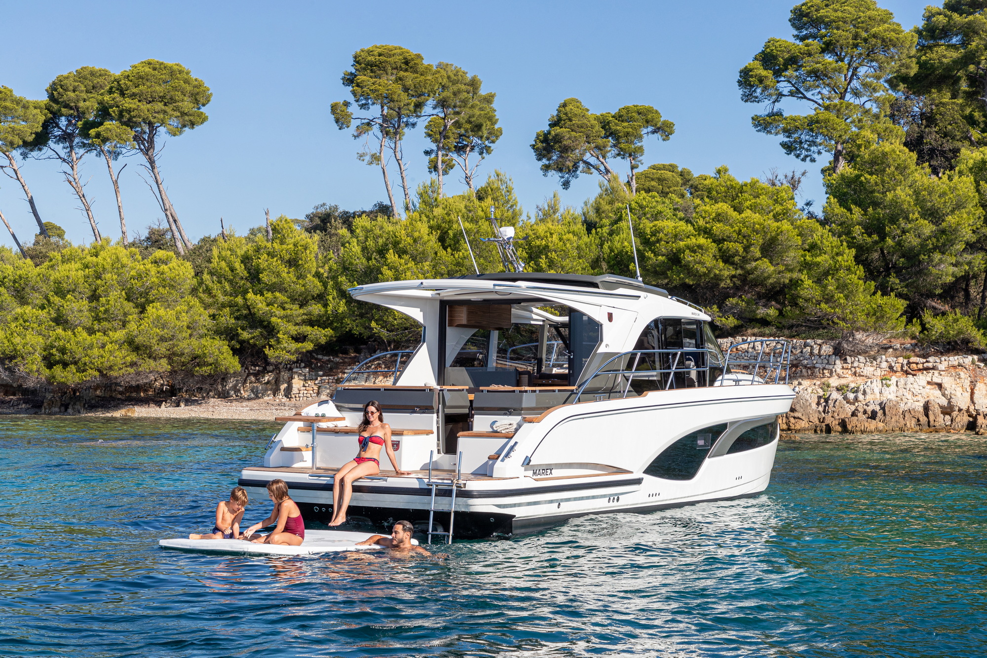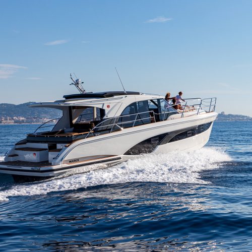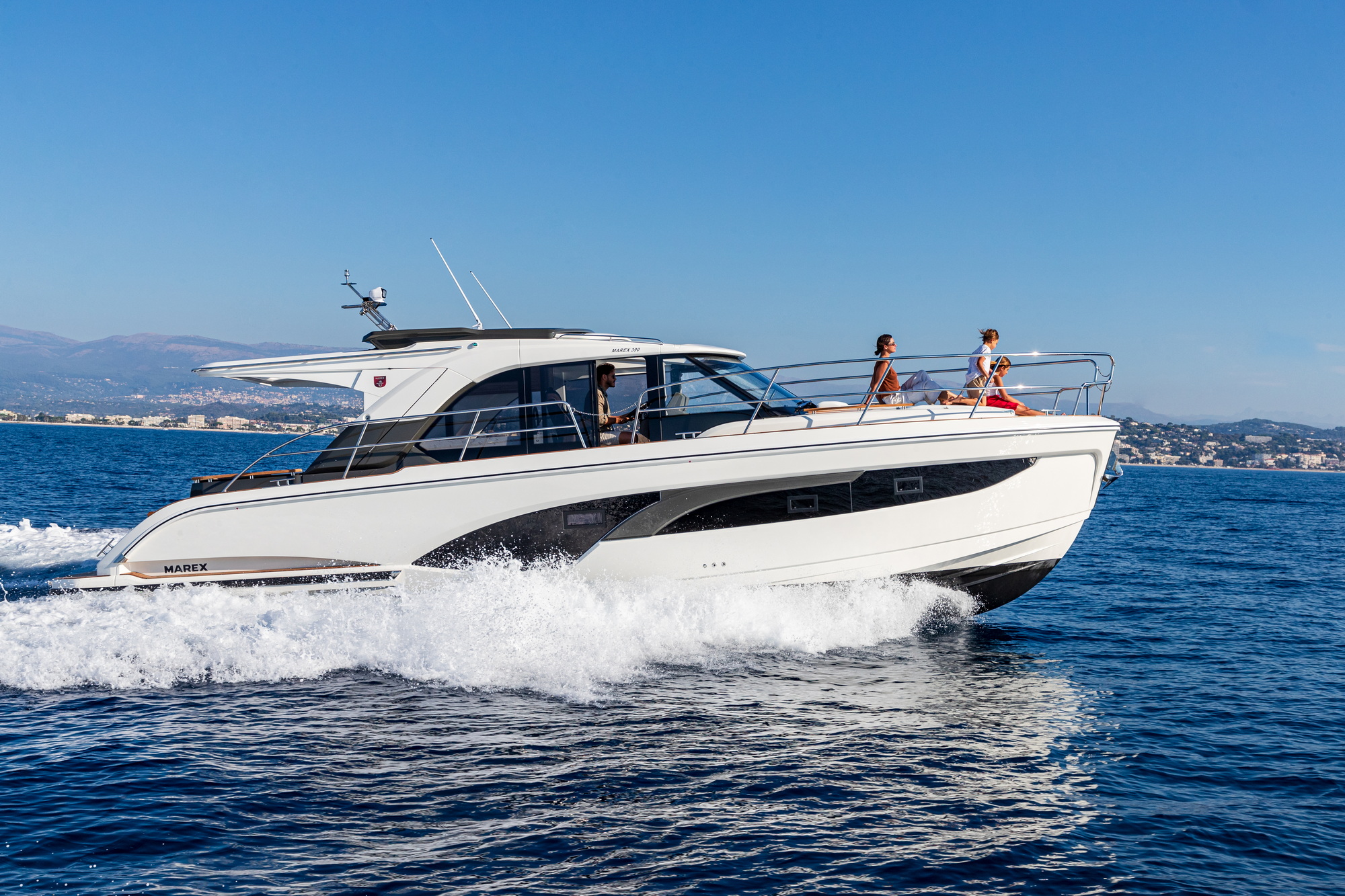 The Marex 390 brings Scandinavian craftsmanship and clean design to a versatile 39-foot cruiser. Expansive windows fill the interior with light, while sliding doors connect the cockpit and saloon for seamless indoor-outdoor living. Compact, stylish, and practical, it delivers true Marex quality in a size that’s easy to handle and enjoy.