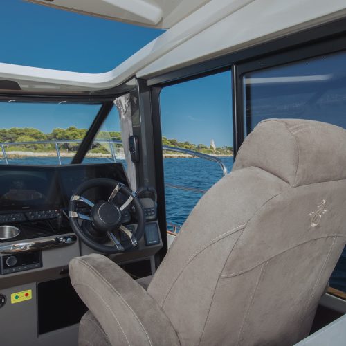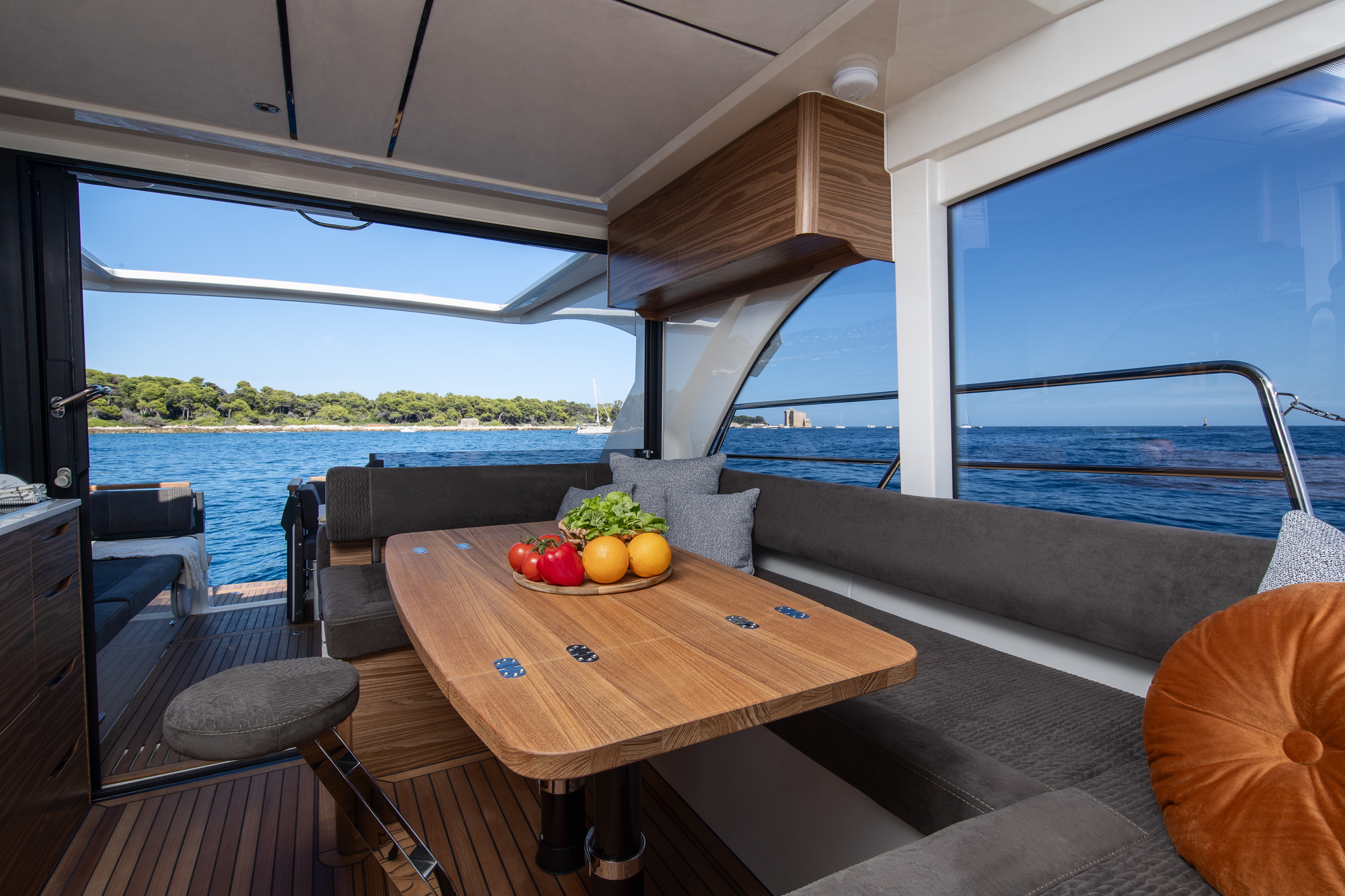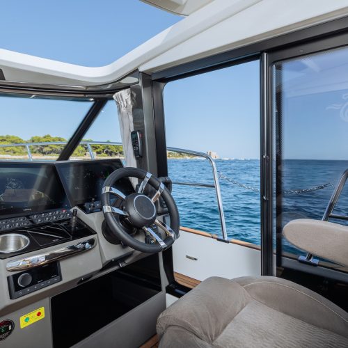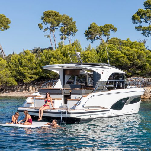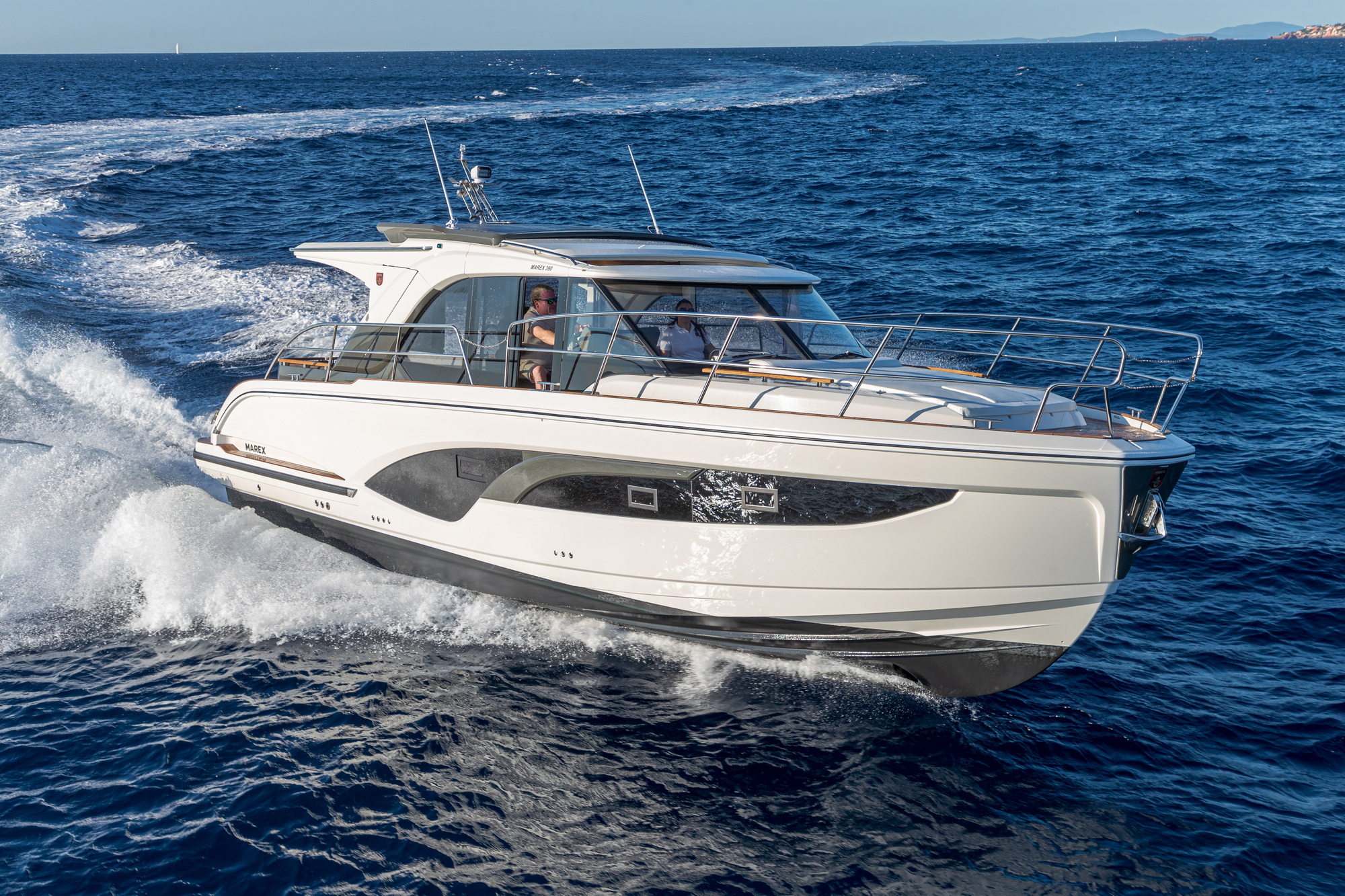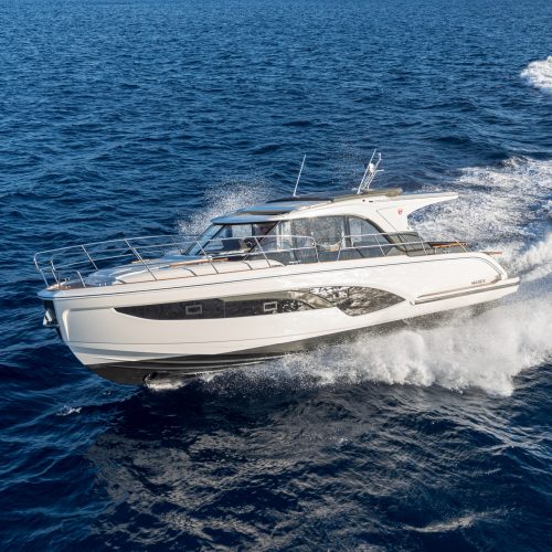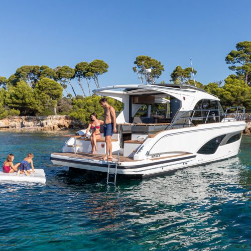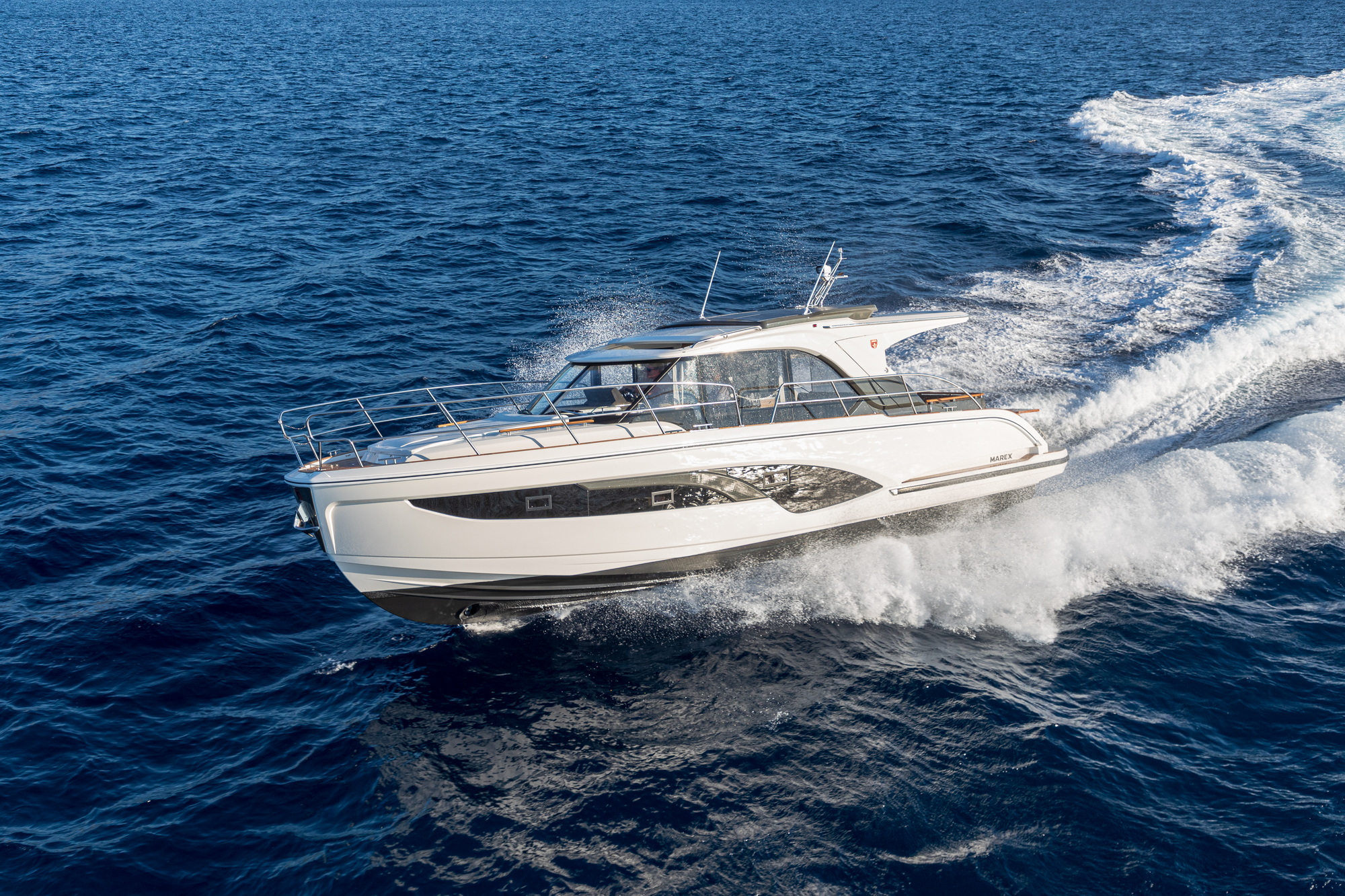 The Marex 390 brings Scandinavian craftsmanship and clean design to a versatile 39-foot cruiser. Expansive windows fill the interior with light, while sliding doors connect the cockpit and saloon for seamless indoor-outdoor living. Compact, stylish, and practical, it delivers true Marex quality in a size that’s easy to handle and enjoy.