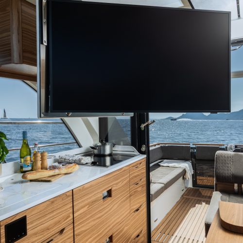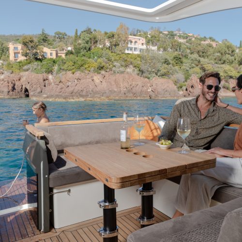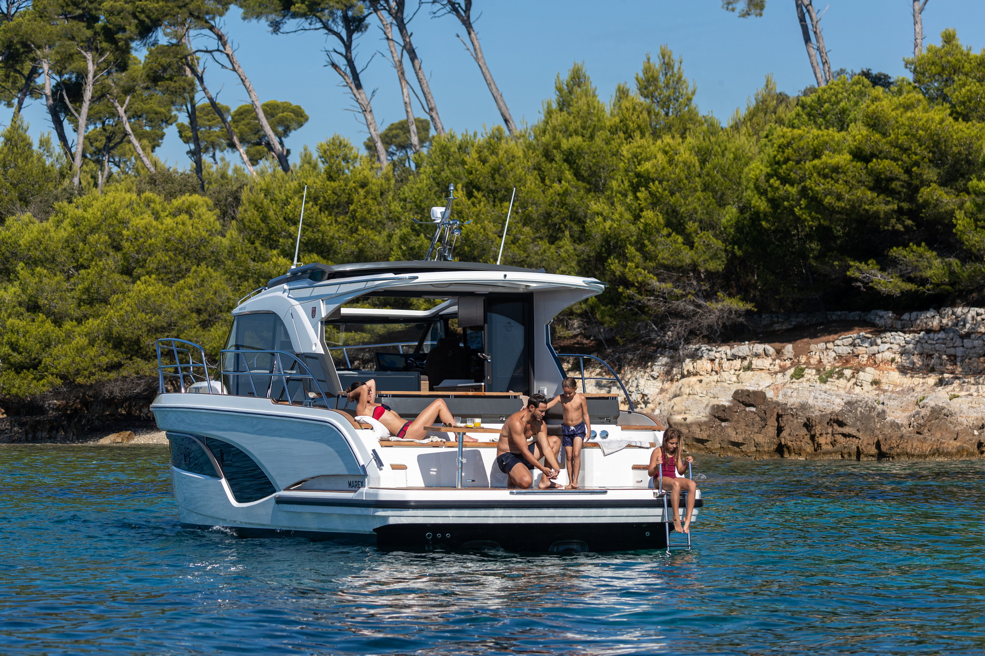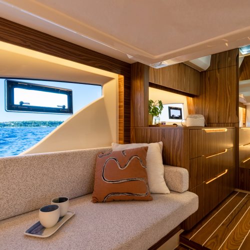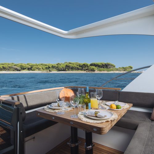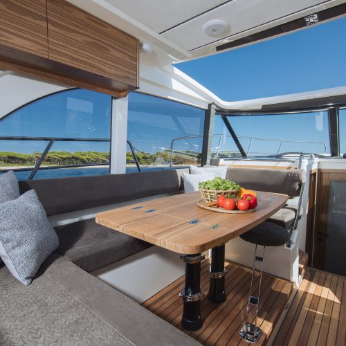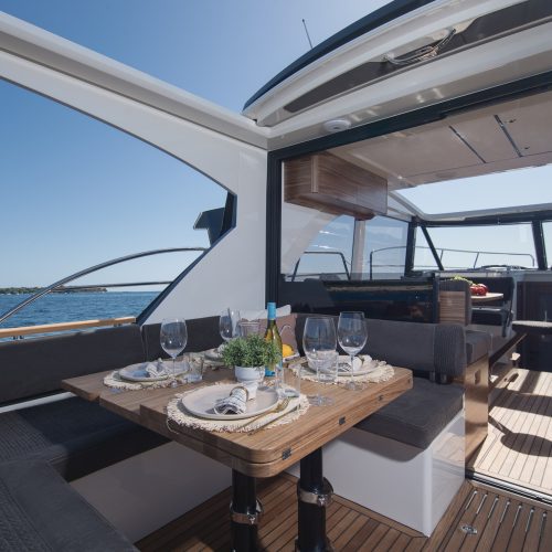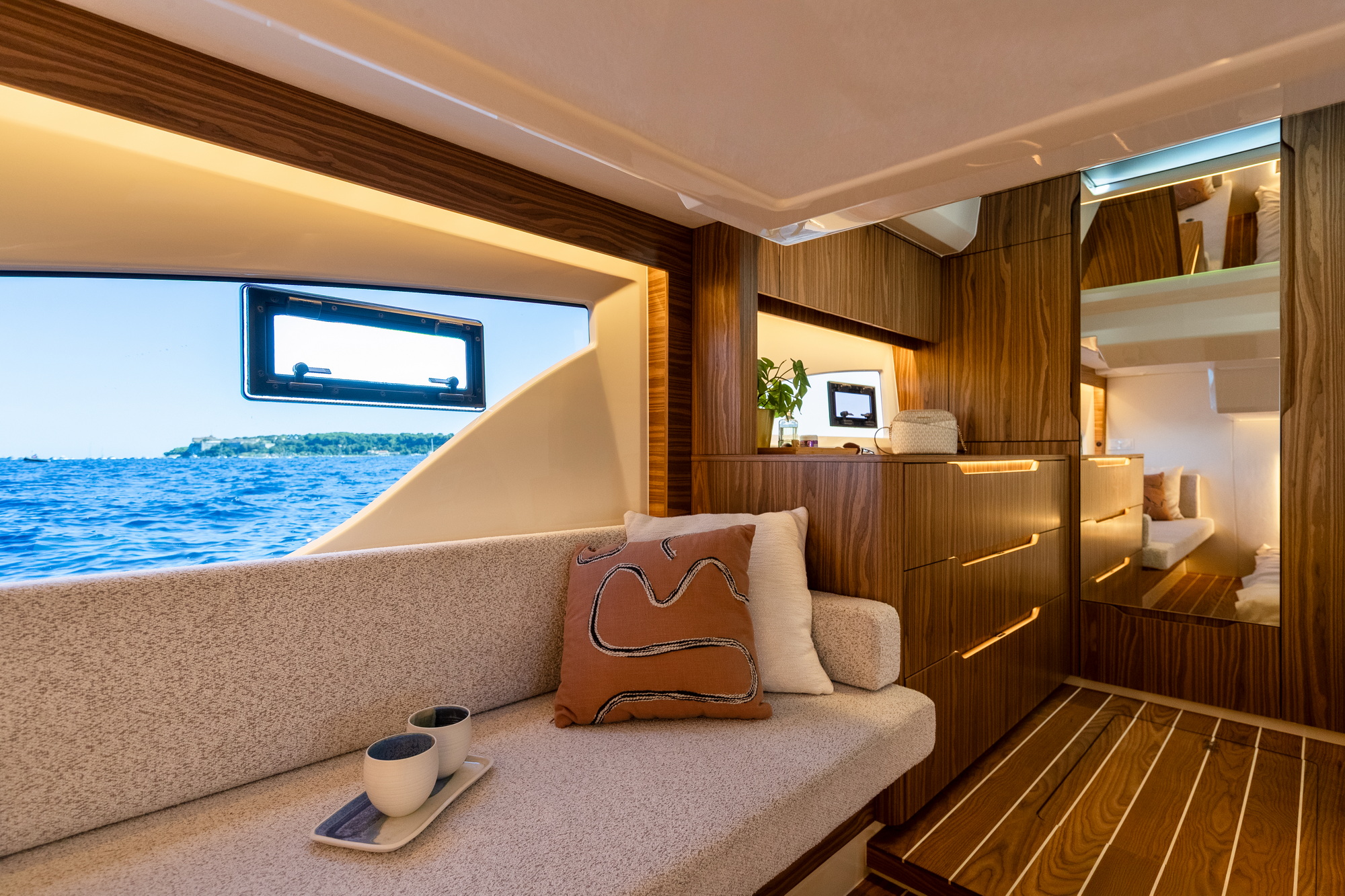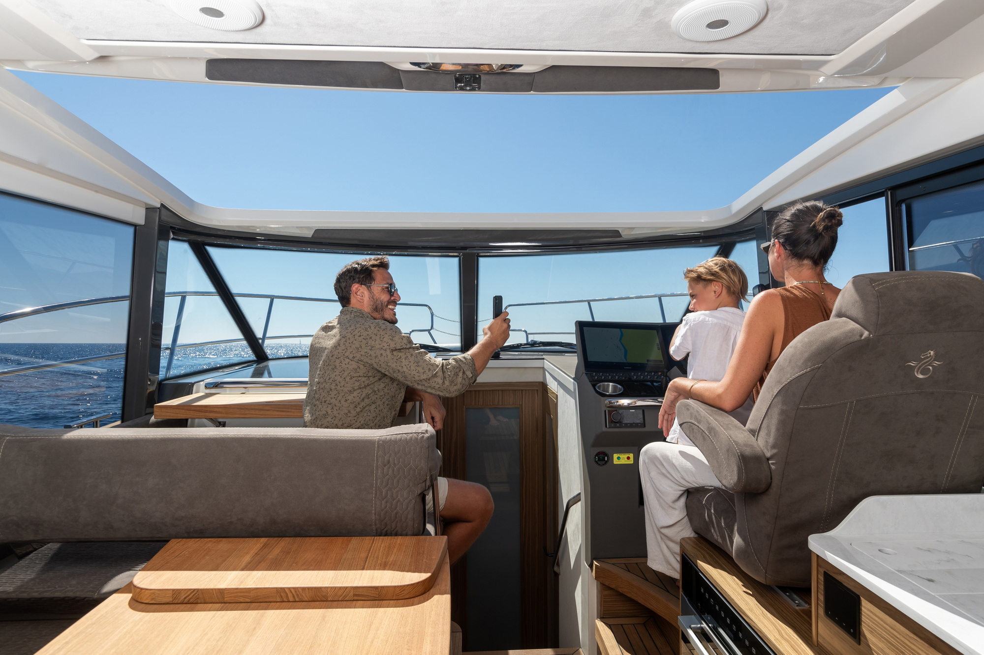 The Marex 390 brings Scandinavian craftsmanship and clean design to a versatile 39-foot cruiser. Expansive windows fill the interior with light, while sliding doors connect the cockpit and saloon for seamless indoor-outdoor living. Compact, stylish, and practical, it delivers true Marex quality in a size that’s easy to handle and enjoy.
