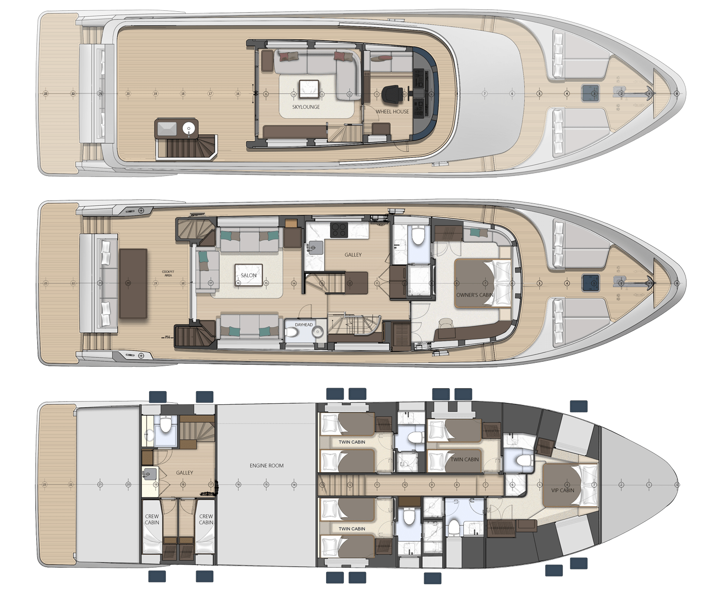 The Nomad 75 is built for owners who want to travel far beyond routine cruising grounds. Its long-range efficiency, abundant storage, and generous deck spaces make it ideal for extended journeys in warm climates, where remote anchorages, quiet bays, and unspoiled coastlines become natural destinations rather than ambitious plans.