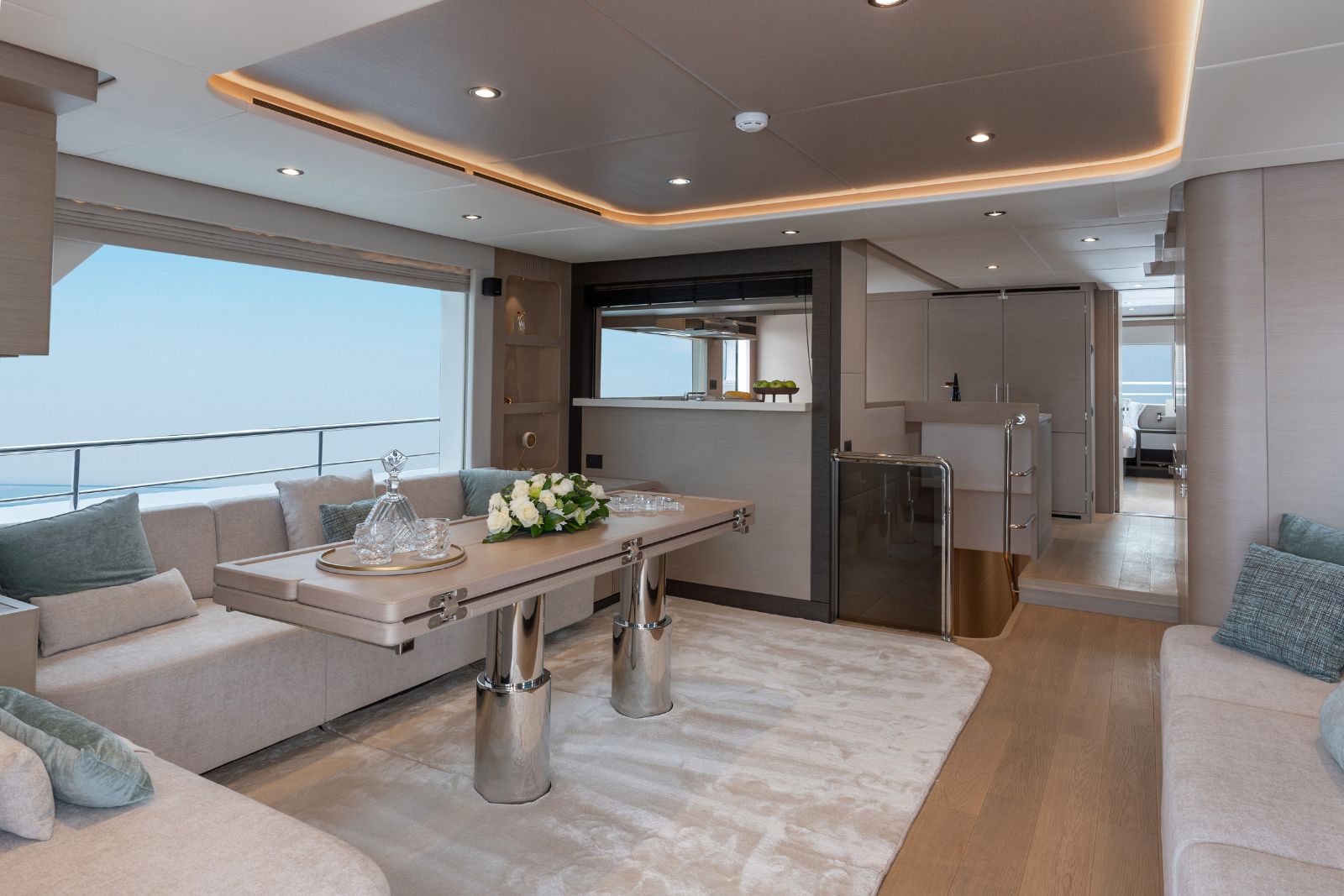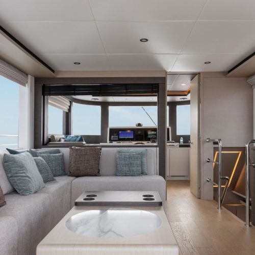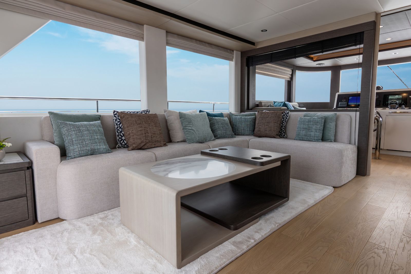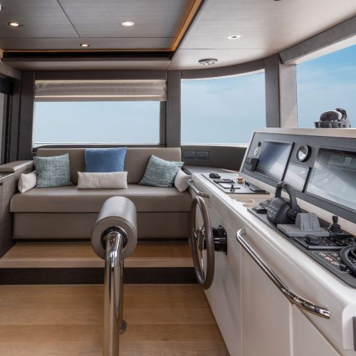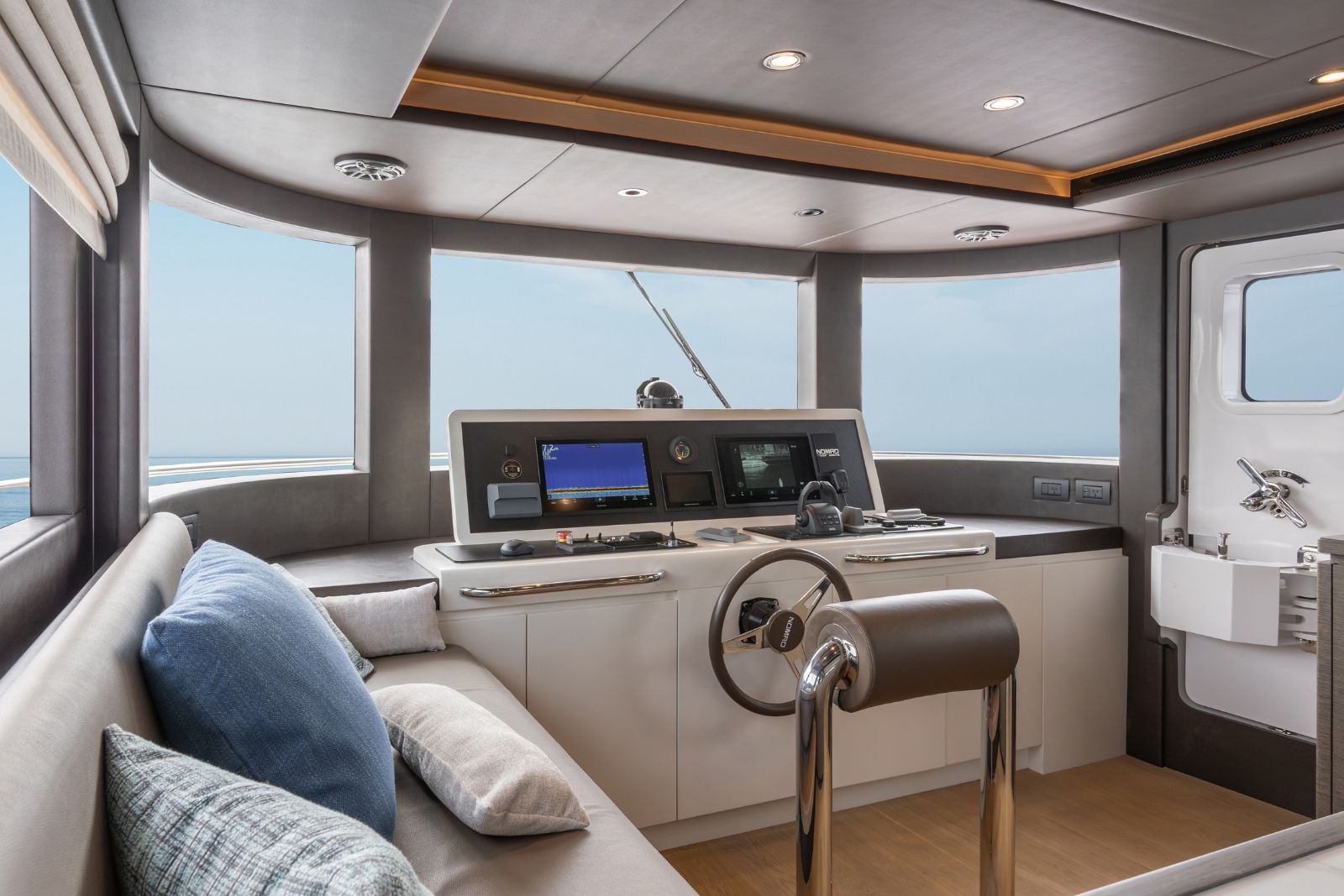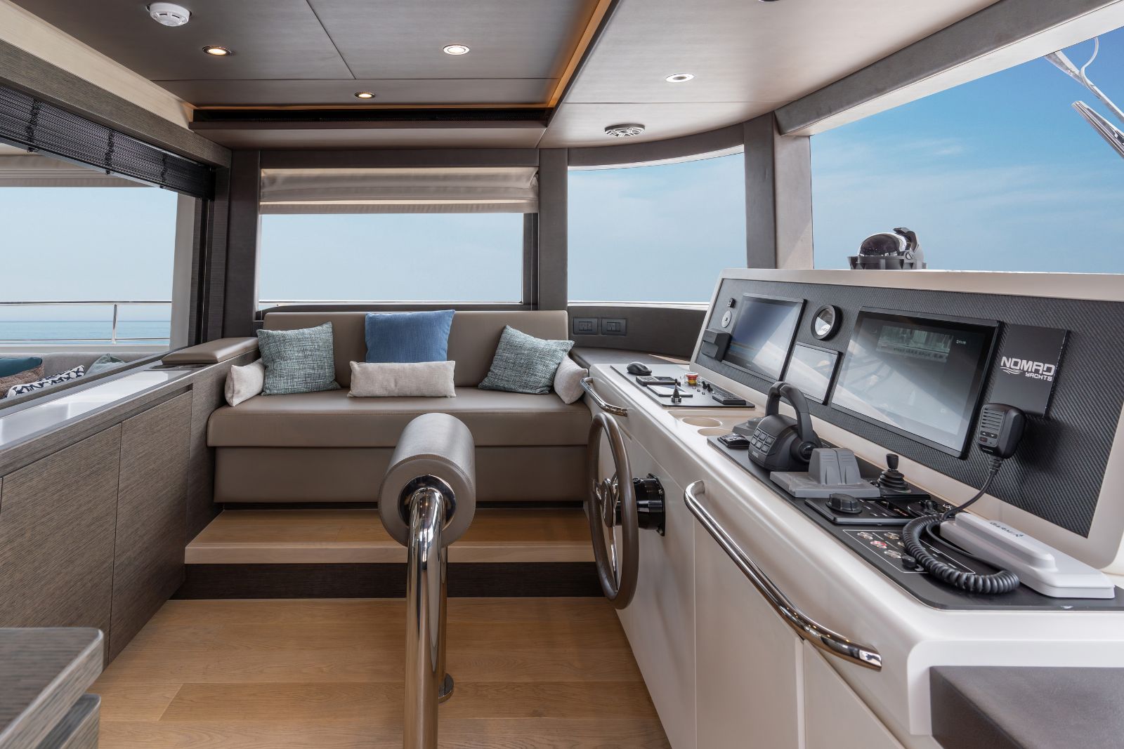 Offering either an open flybridge or fully enclosed upper deck, the Nomad 75 delivers remarkable volume and comfort for its size. Panoramic windows, shaded exterior areas, and flexible social zones create a cool, relaxed environment—perfect for year-round warm-water cruising with family and friends.