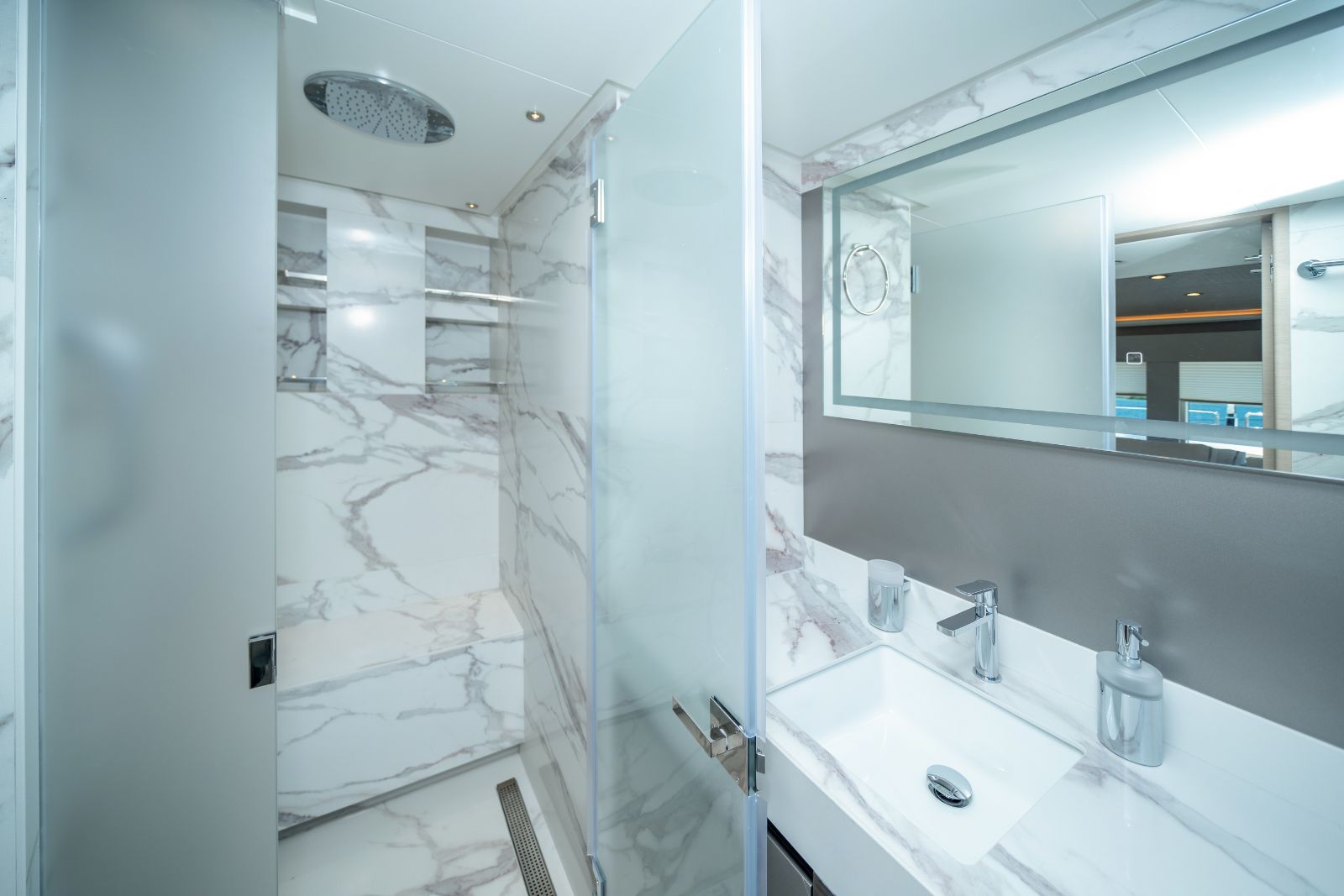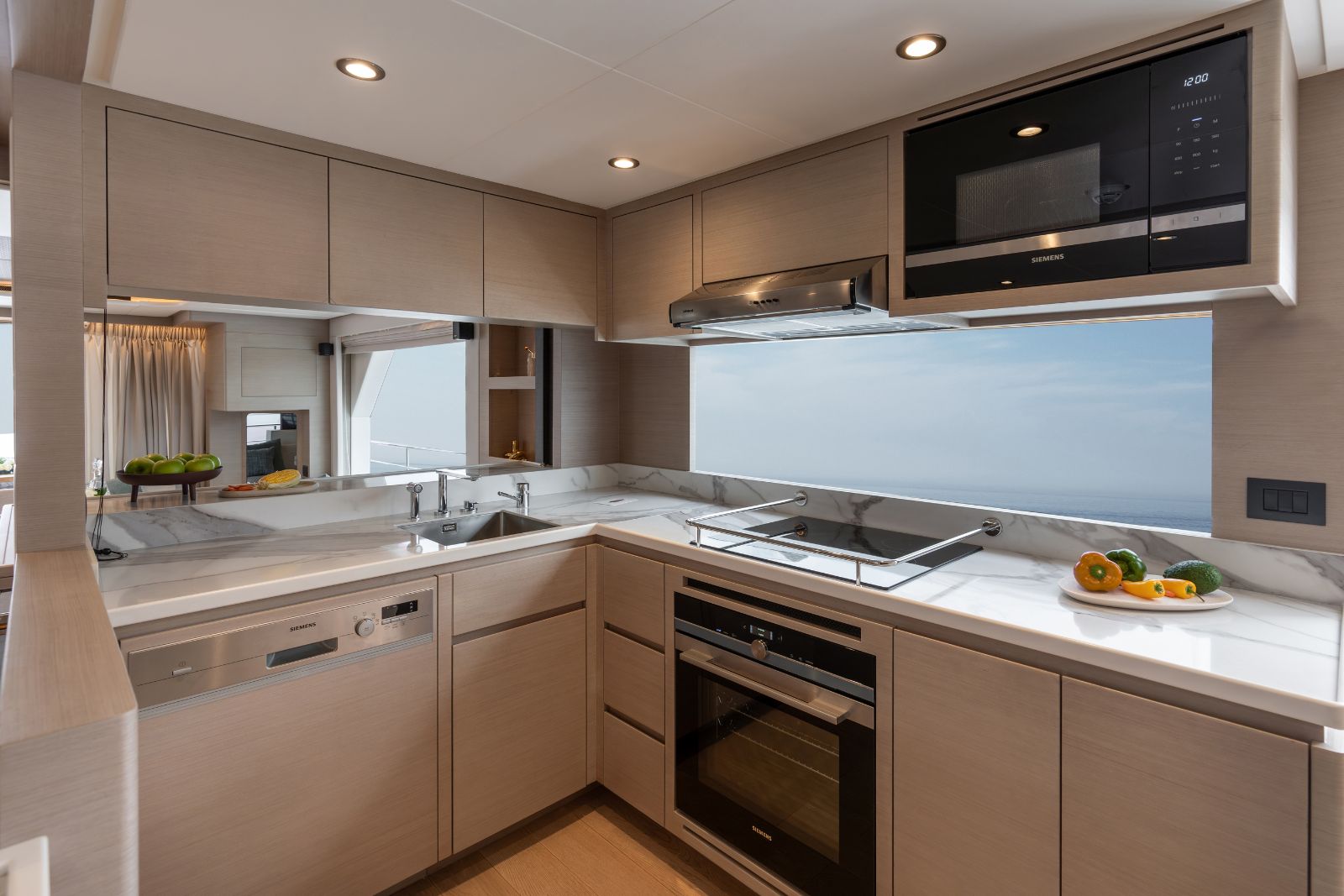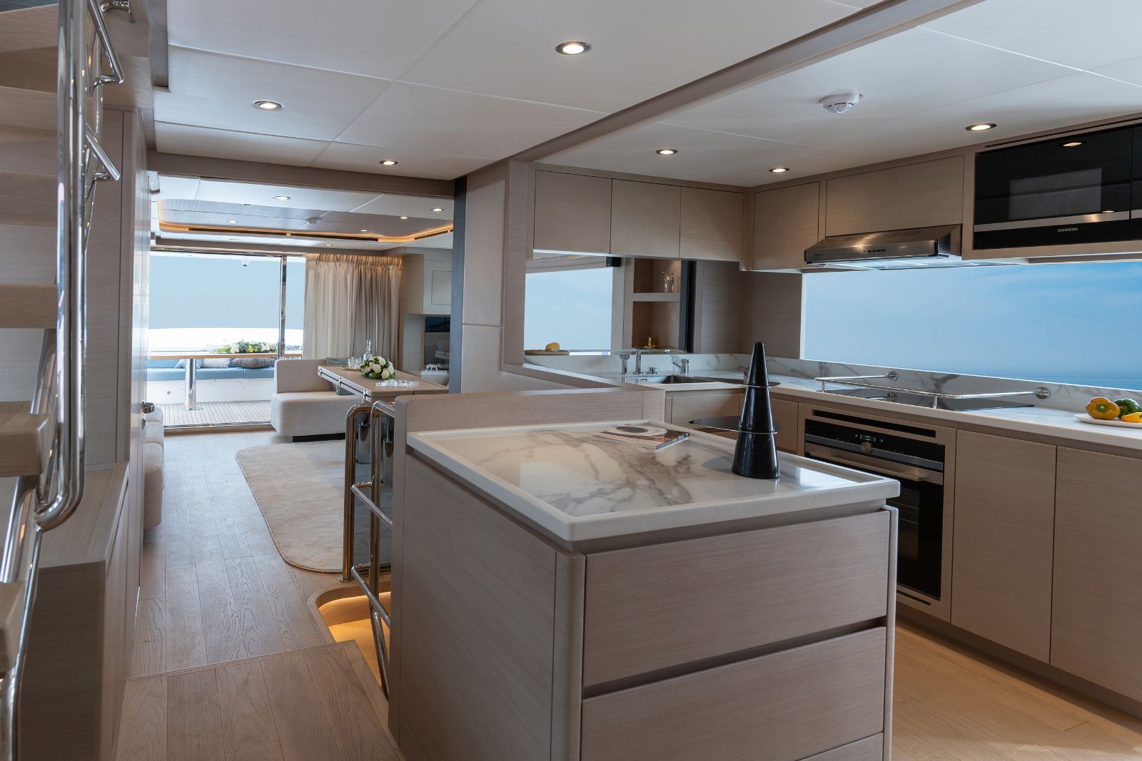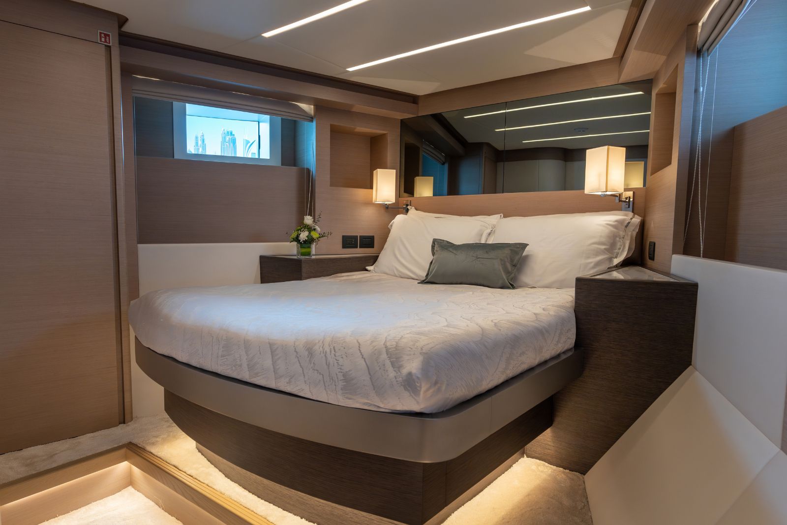 Offering either an open flybridge or fully enclosed upper deck, the Nomad 75 delivers remarkable volume and comfort for its size. Panoramic windows, shaded exterior areas, and flexible social zones create a cool, relaxed environment—perfect for year-round warm-water cruising with family and friends.