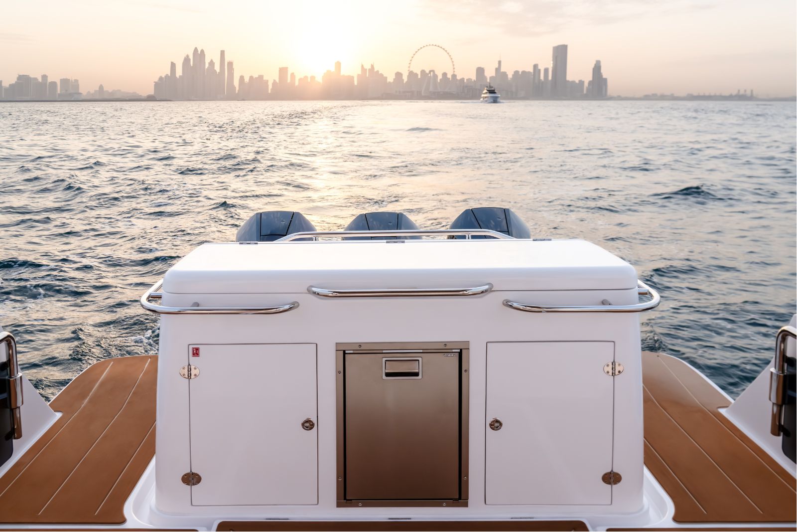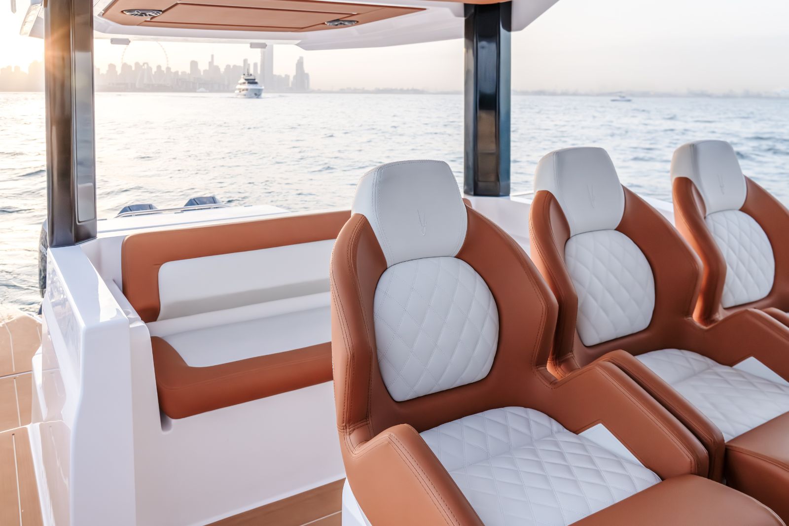 The Oryx 37FX is designed around comfort and connection, featuring a full walkaround deck and generous seating throughout. This 37-foot sports boat creates an inviting, social environment where friends and family can relax together, whether cruising, anchoring, or enjoying time at sea.