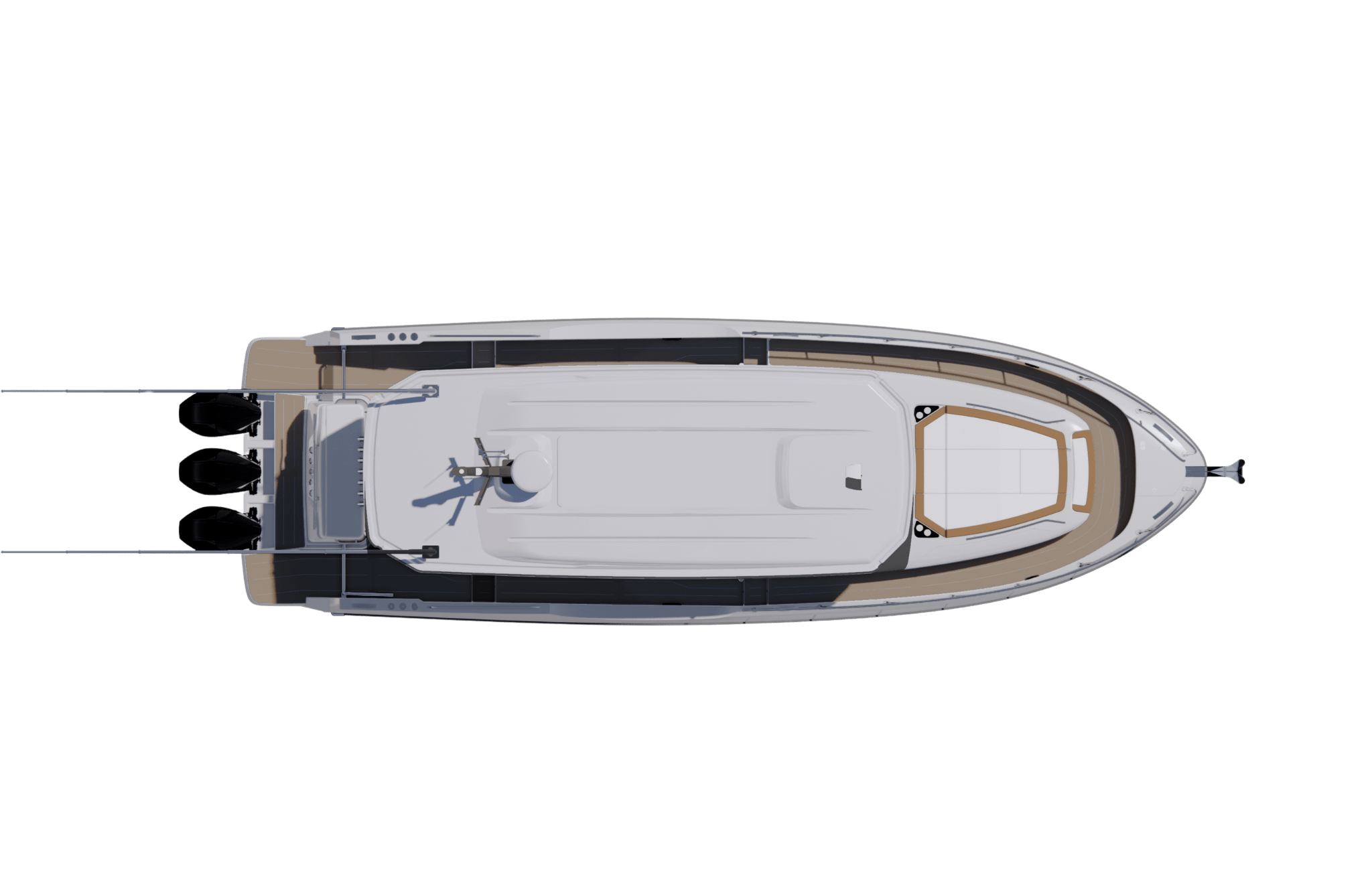 A large, sheltered cockpit allows everyone onboard to travel in comfort, protected from wind, sun, and spray. Ideal for fast runs between anchorages or dive sites, the layout combines performance with protection, making the 37FX equally enjoyable at speed or while drifting at rest.